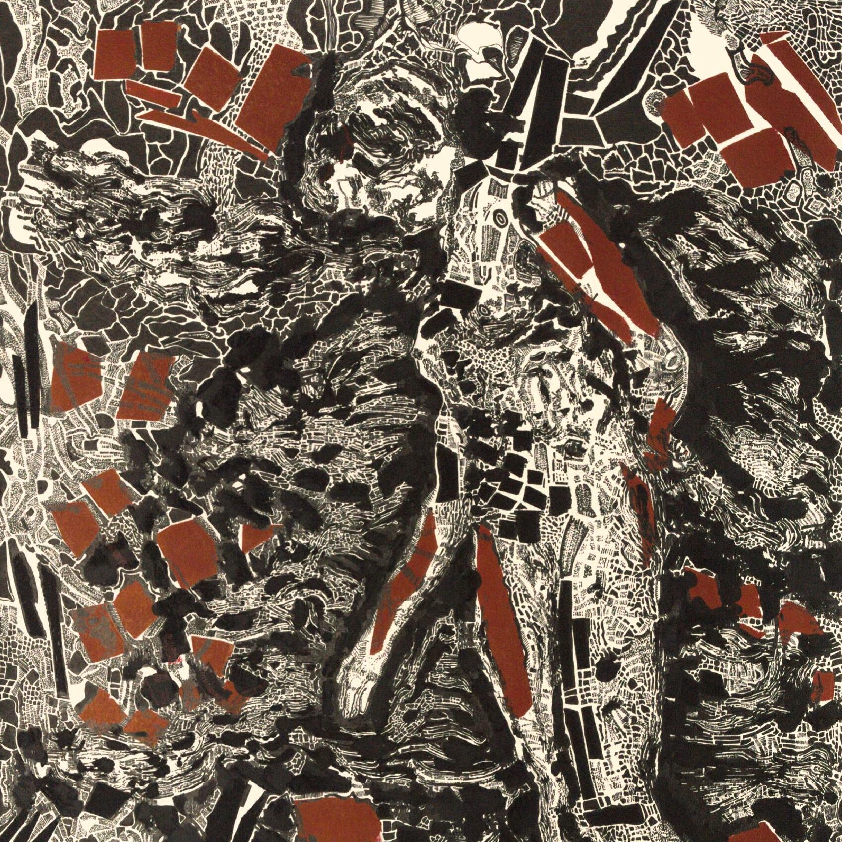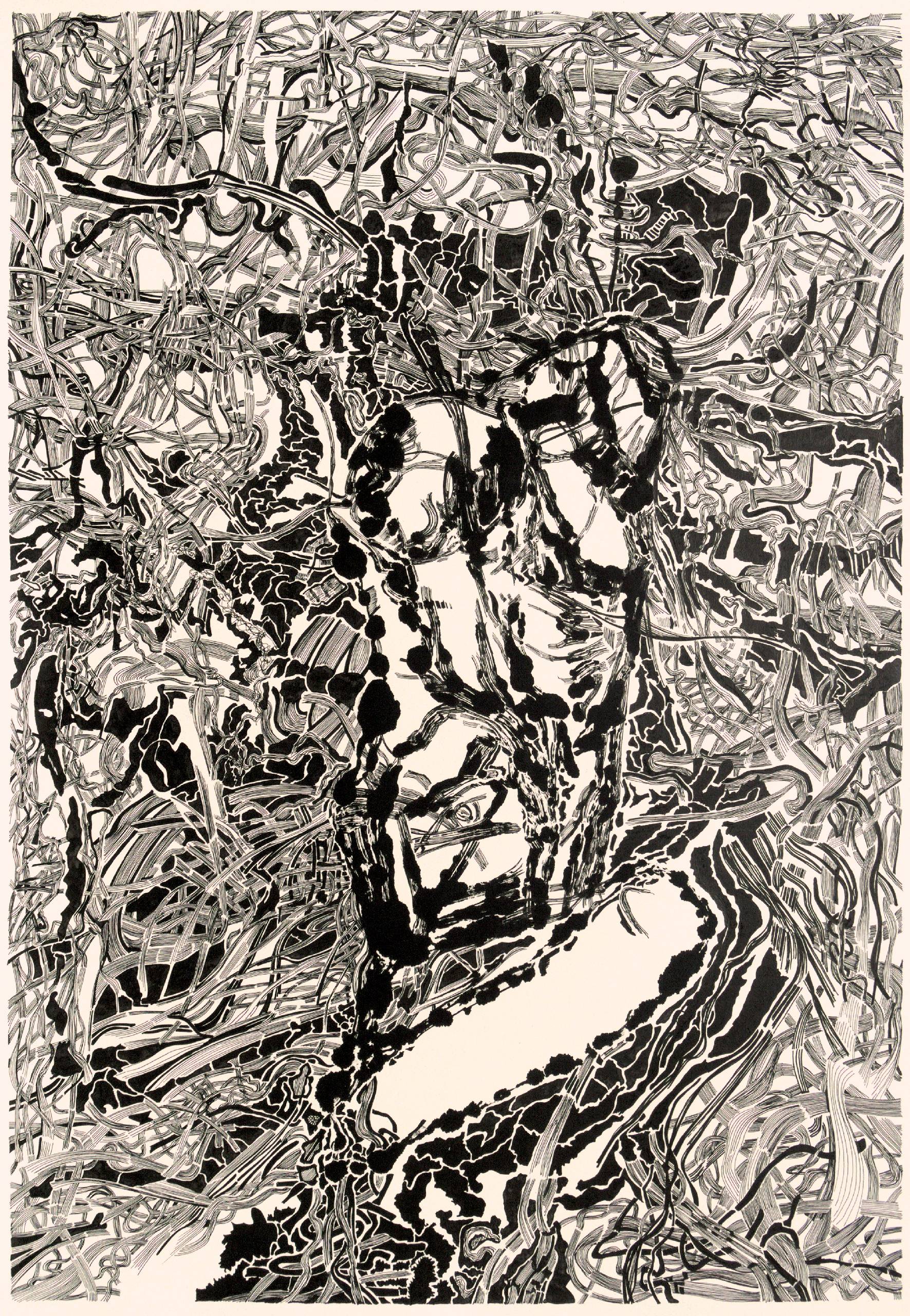 Sebastian Skowroński „Fojbos”, Figura XVII, 2020, technika własna, monotypia tusz kalkograficzny, rysunek tusz indyjski, 100×70 cm, papier około 200g