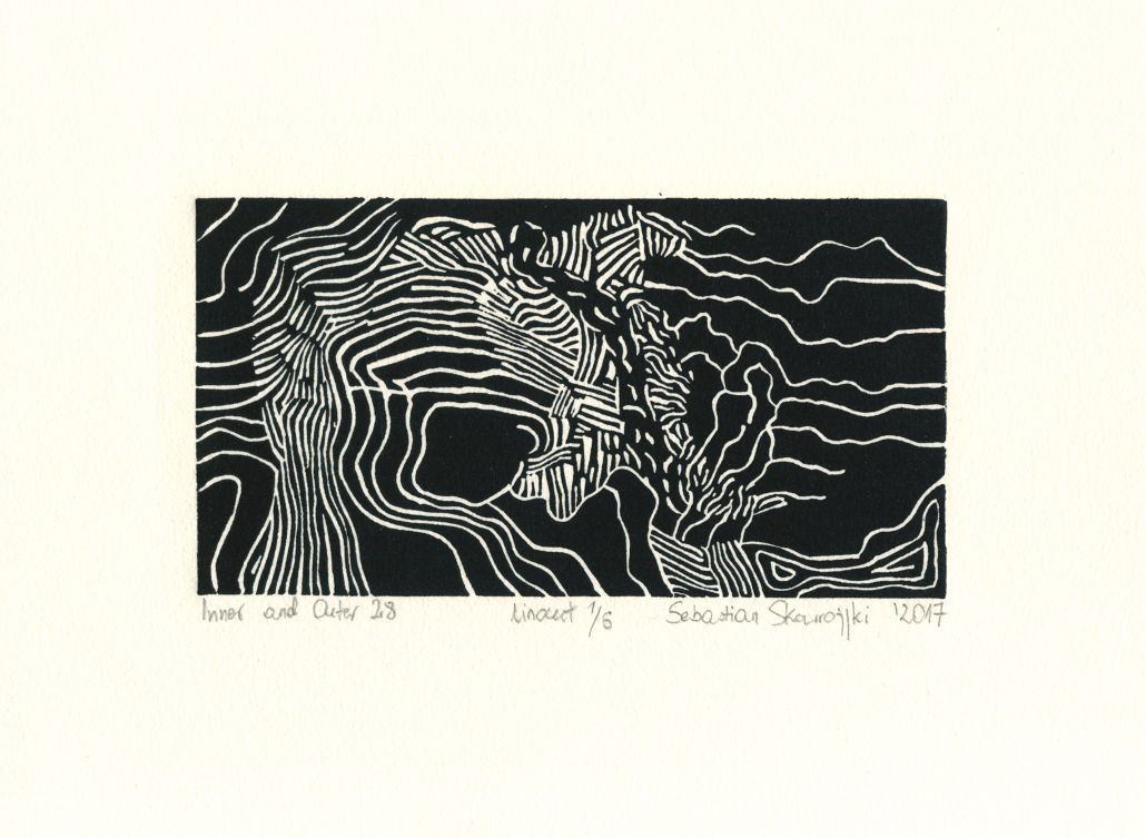 Sebastian Skowroński, Inner and Outer 20, 2016, linoryt, 15,6x8cm, odbitka 1/6, papier Hahnemuhle 300g (25x16cm)