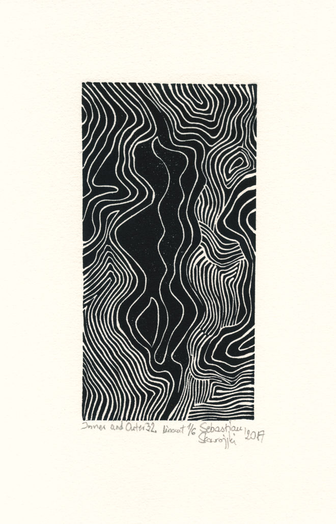 Sebastian Skowroński, Inner and Outer 32, 2017, linoryt, 15,6x8cm, odbitka 2/6, papier Hahnemuhle 300g (25x16cm)