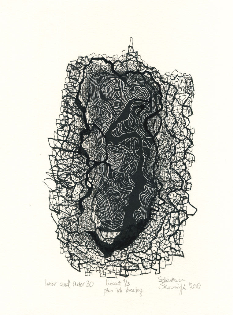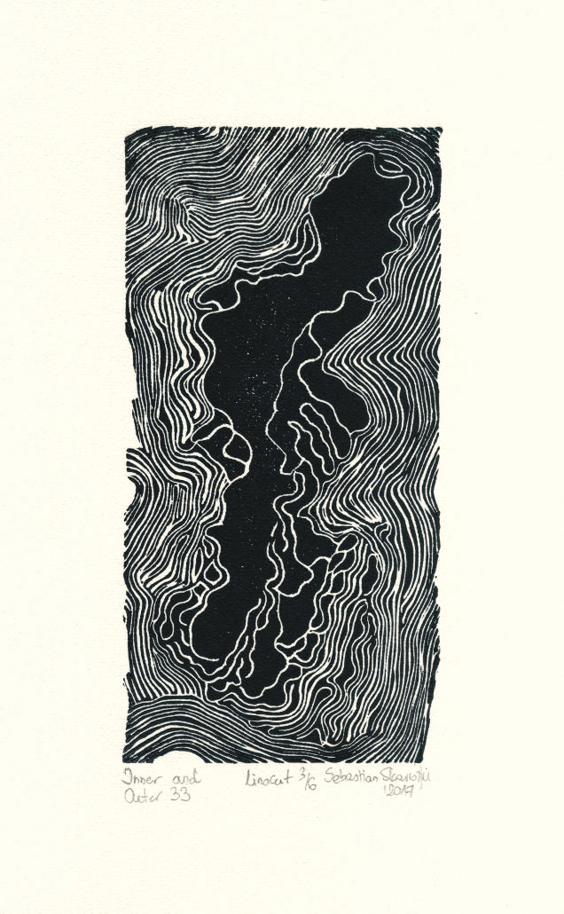 Sebastian Skowroński, Inner and Outer 33, 2017, linoryt, 20x10cm, odbitka 1/6, papier Hahnemuhle 300g (29x18cmJ