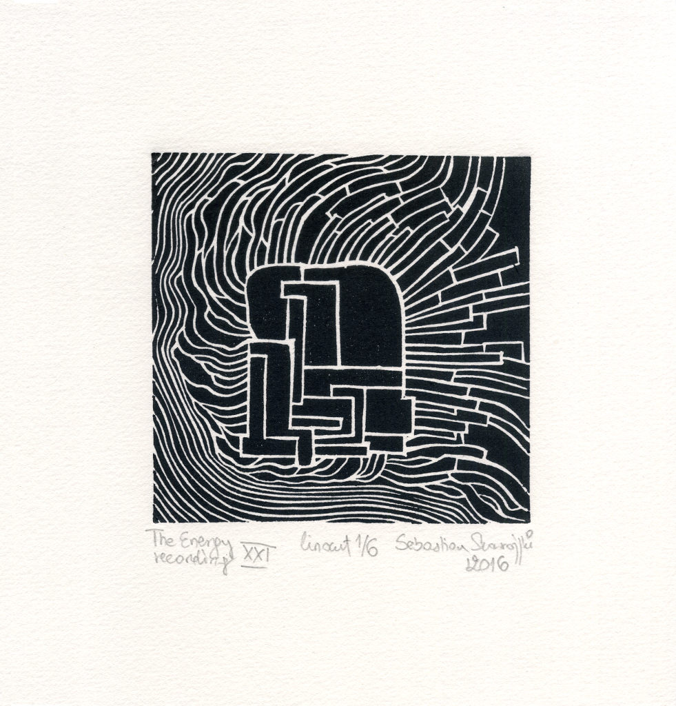 Sebastian Skowroński, The Energy recording XLVII, 2017, linoryt, 10x10cm, rycina 2/4, papier Hahnemuhle 230g